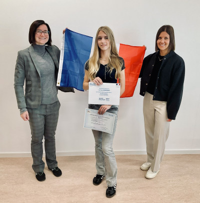 Ein ganz besonderer Grund zur Freude: Unsere Schülerin Leni Tarja Schneidenbach hat bei der französischen Sprachprüfung DELF scolaire A1 ein herausragendes Ergebnis erzielt. Mit ihrer beeindruckenden Leistung gehört sie zu den besten Teilnehmerinnen im gesamten Freistaat Bayern. Wir sind sehr stolz auf diese tolle Leistung und freuen uns mit ihr über diese besondere Auszeichnung.